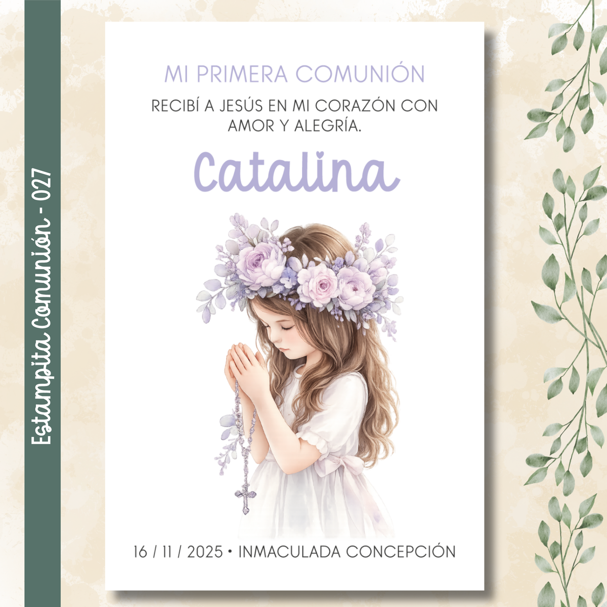 🌿 Estampitas de Comunión Personalizadas