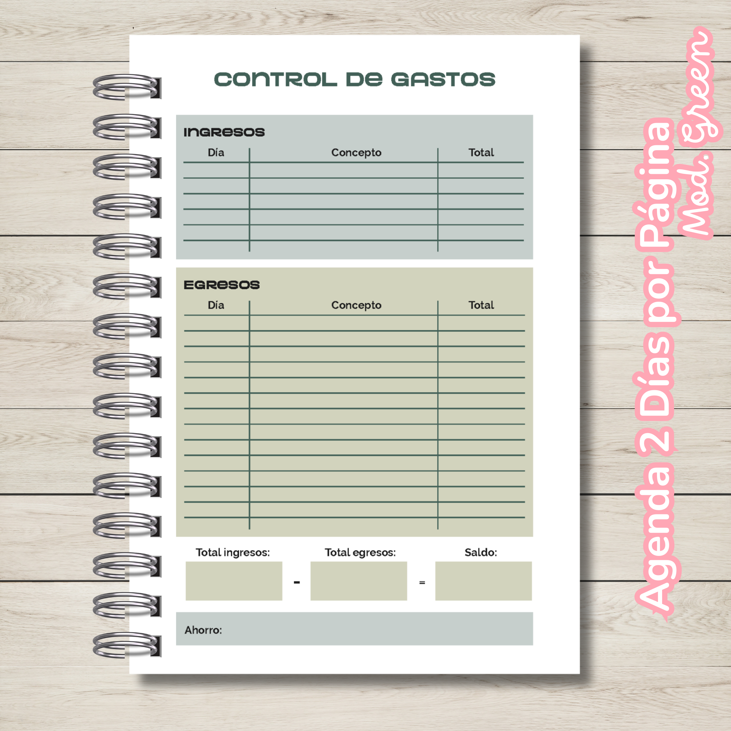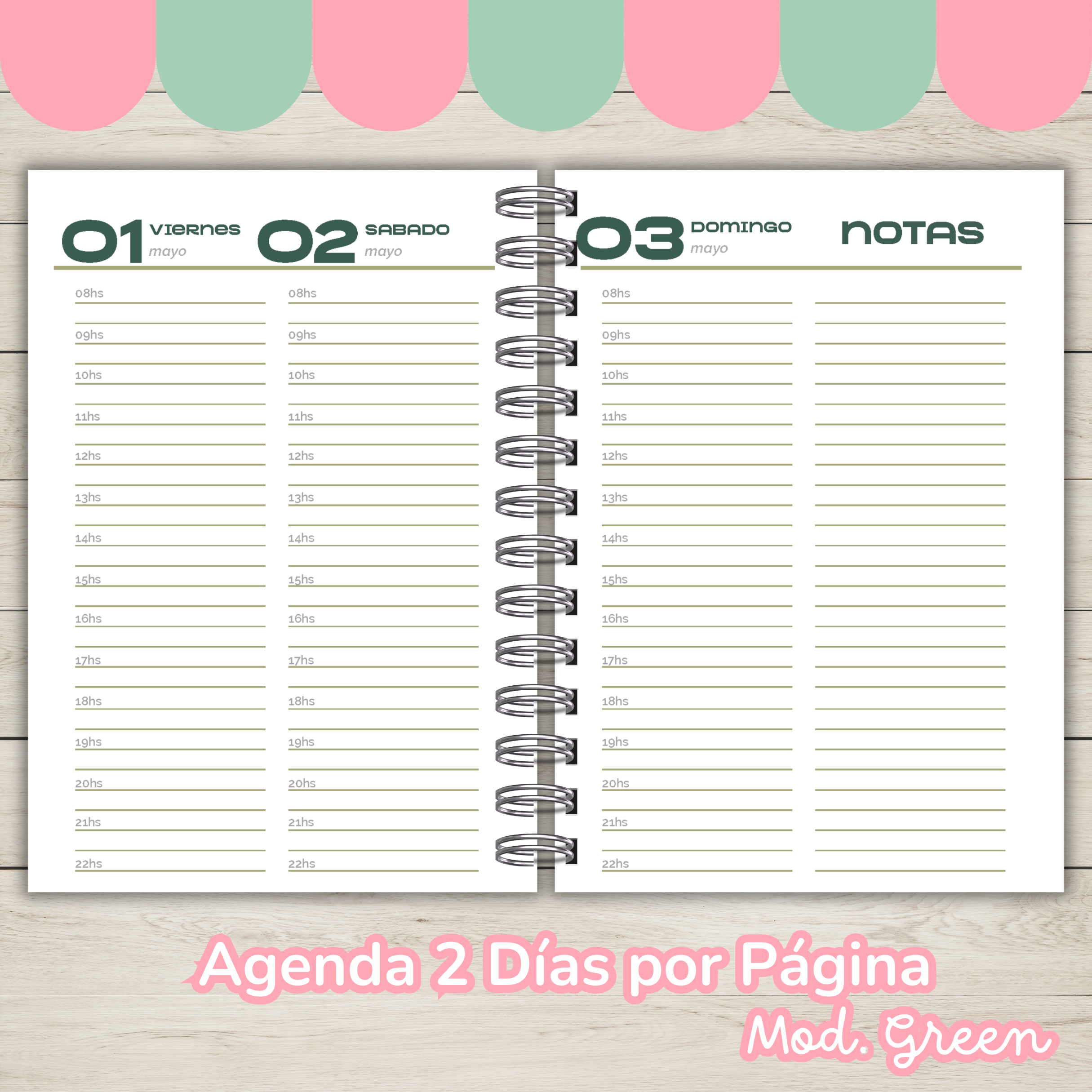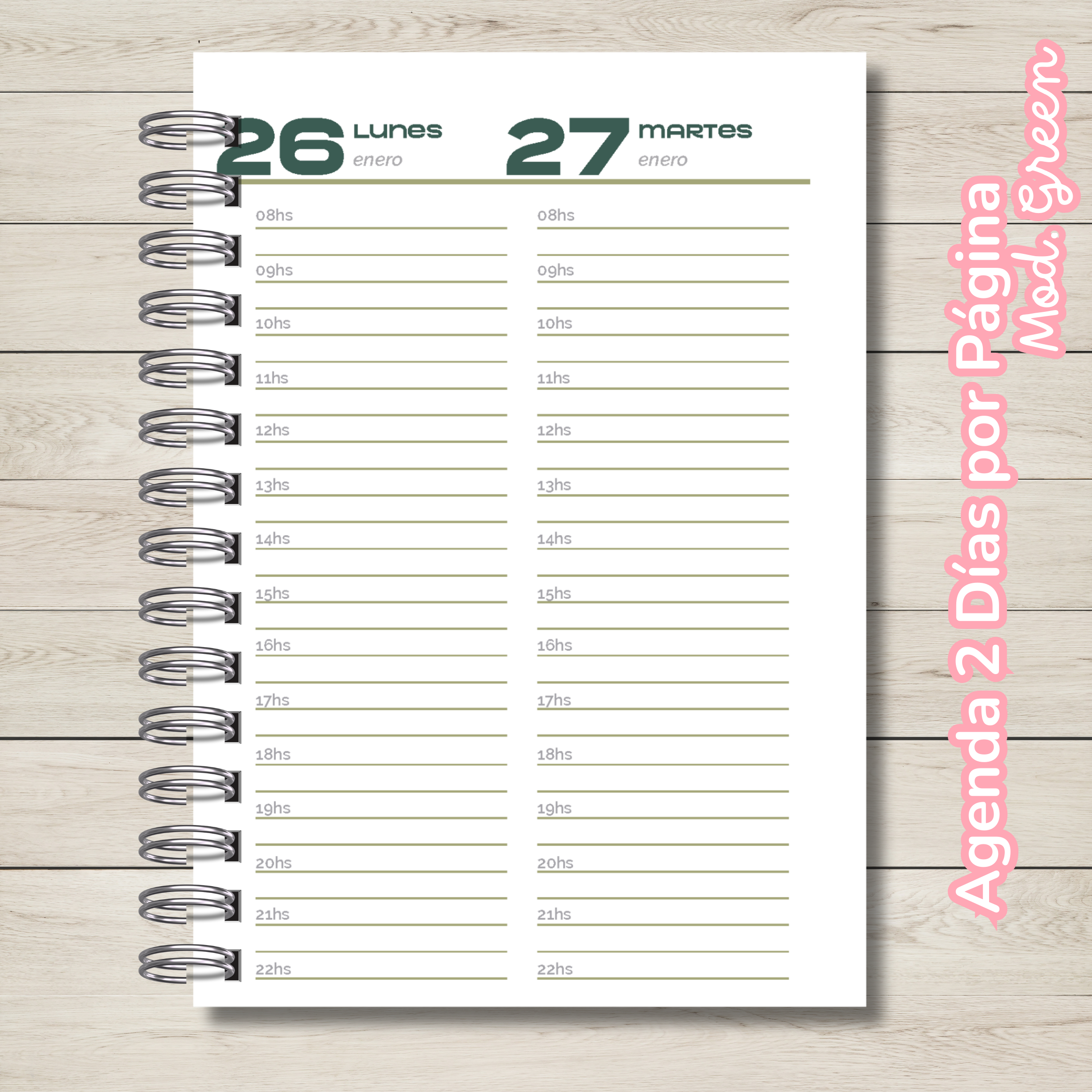 Estás viendo el interior AGENDA DOS DÍAS POR PÁGINA MODELO GREEN