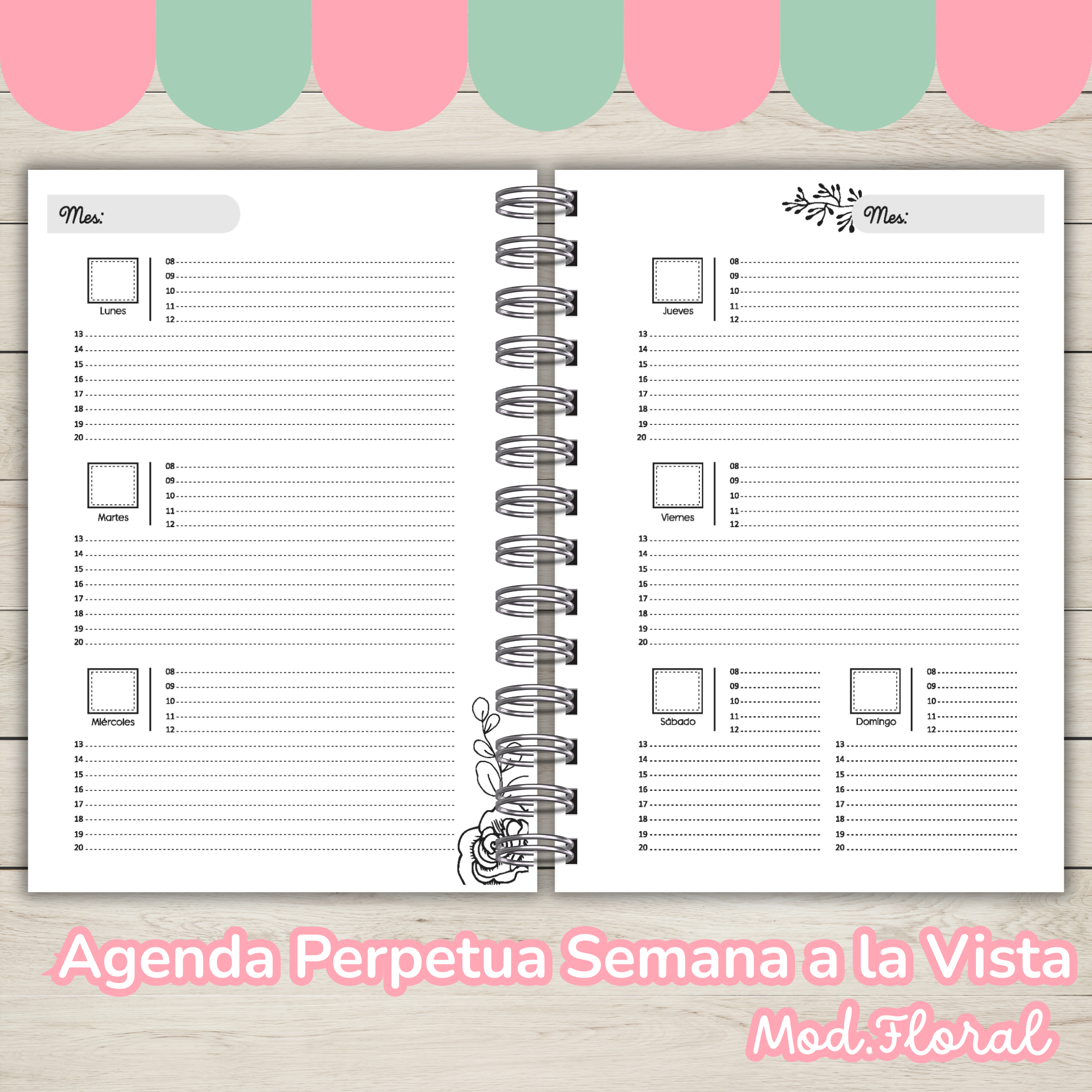 Estás viendo el interior AGENDA PERPETUA SEMANA A LA VISTA MODELO FLORAL