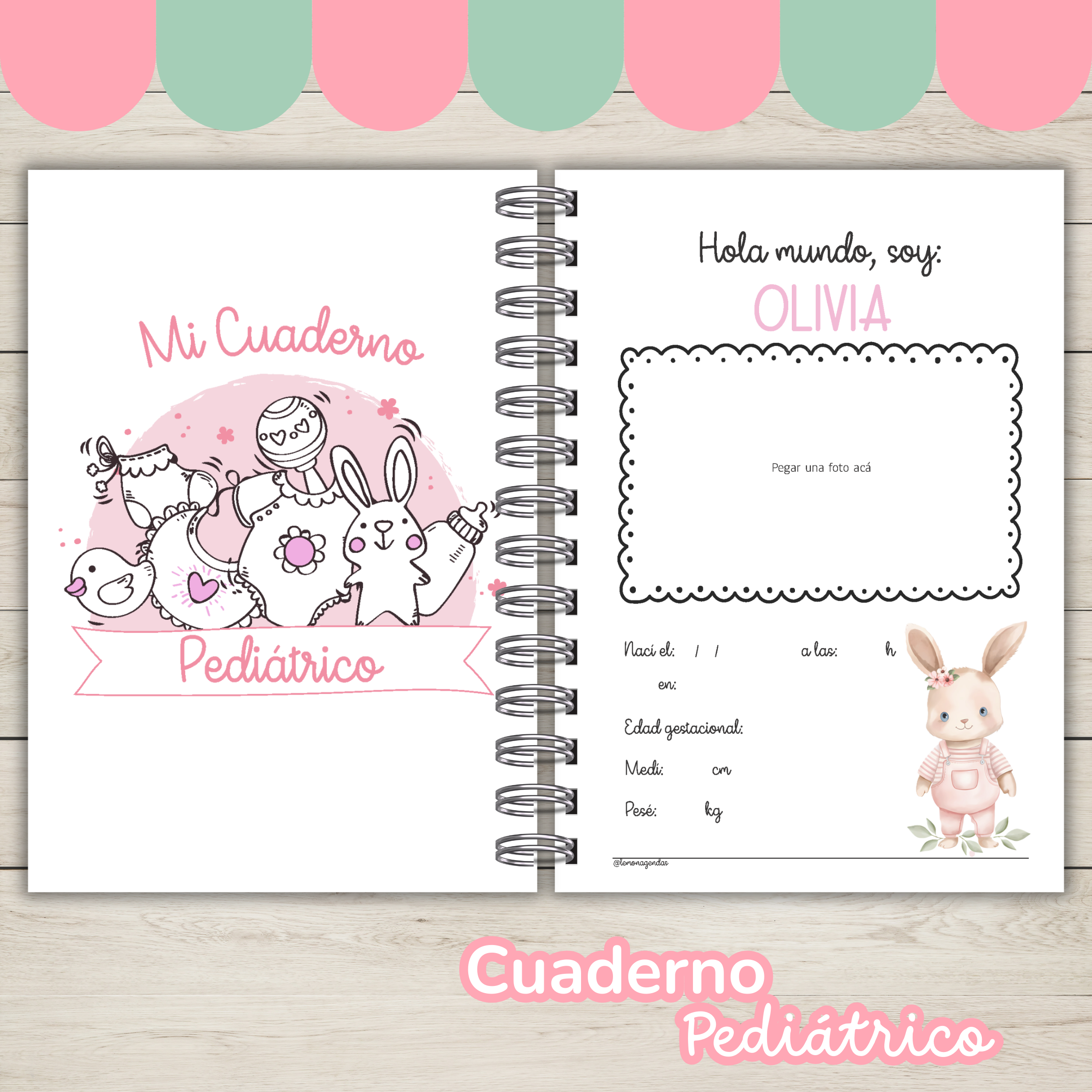 - Presentación del bebé y espacio para registrar los primeros datos de nacimiento