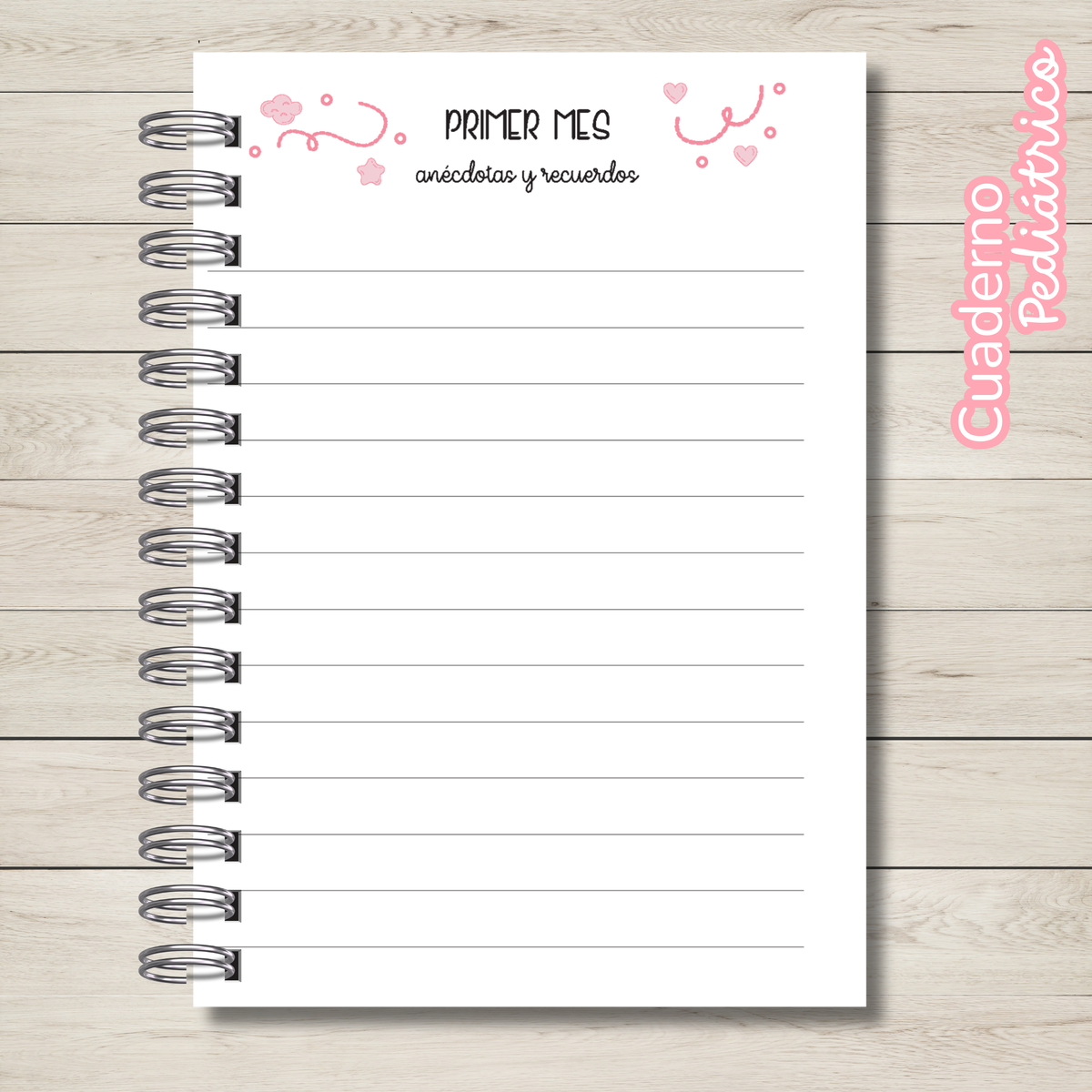 - Hojas de opalina (gramaje alto) para cada mes con fondo para pegar fotos desde el primer mes hasta el año y registrar todos los recuerdos de cada mes
