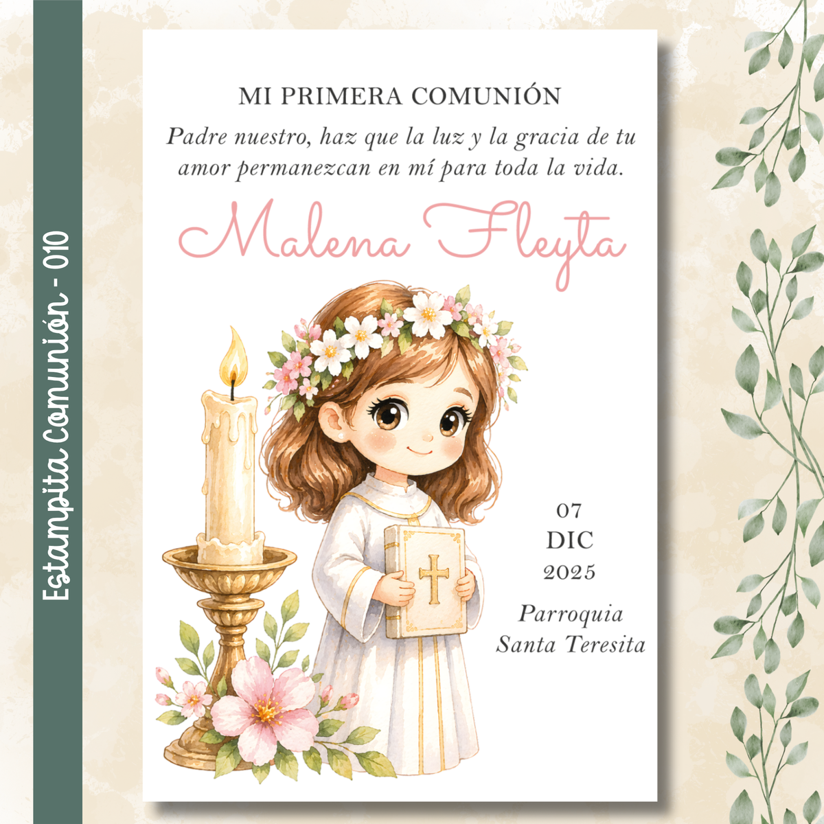 🌿 Estampitas de Comunión Personalizadas