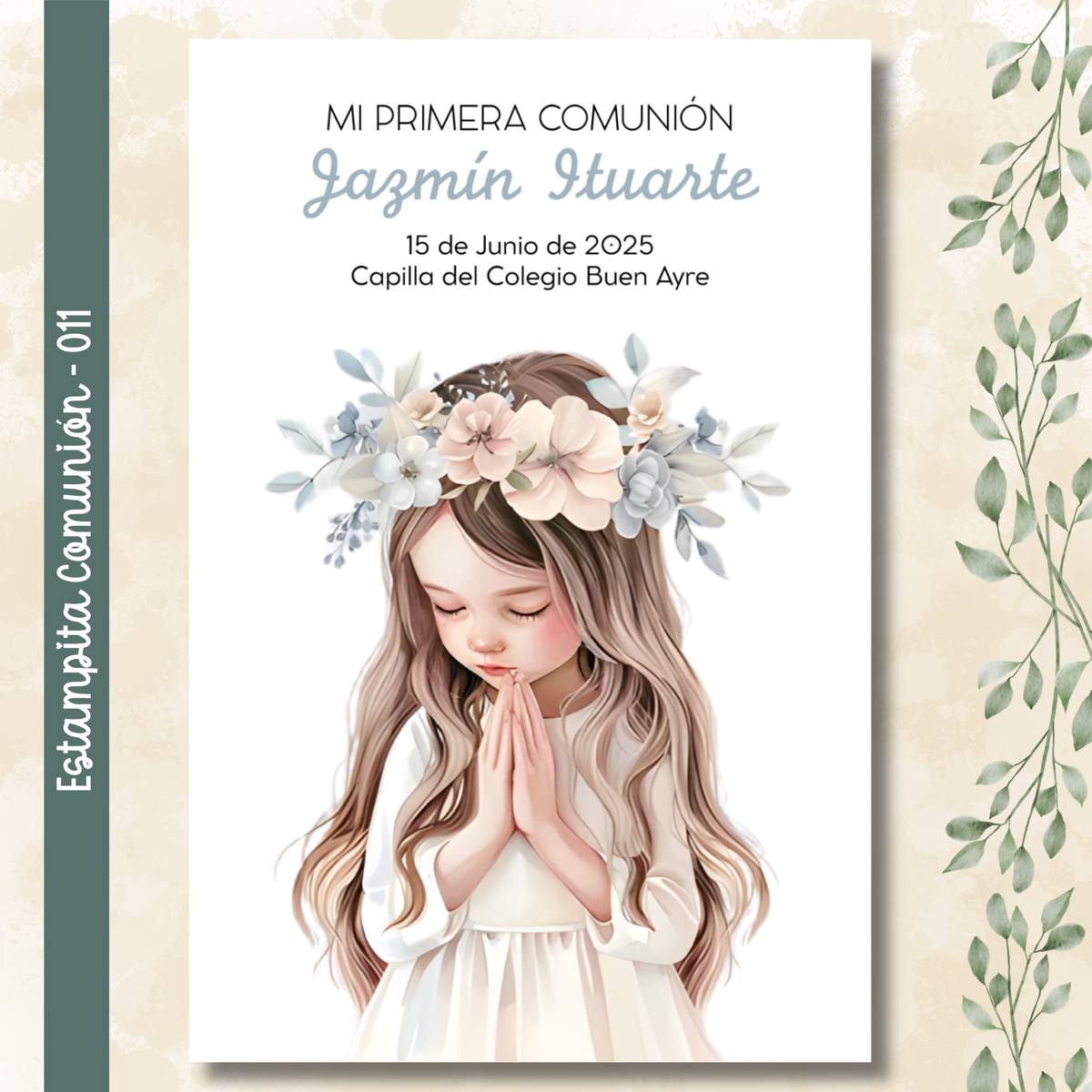 🌿 Estampitas de Comunión Personalizadas