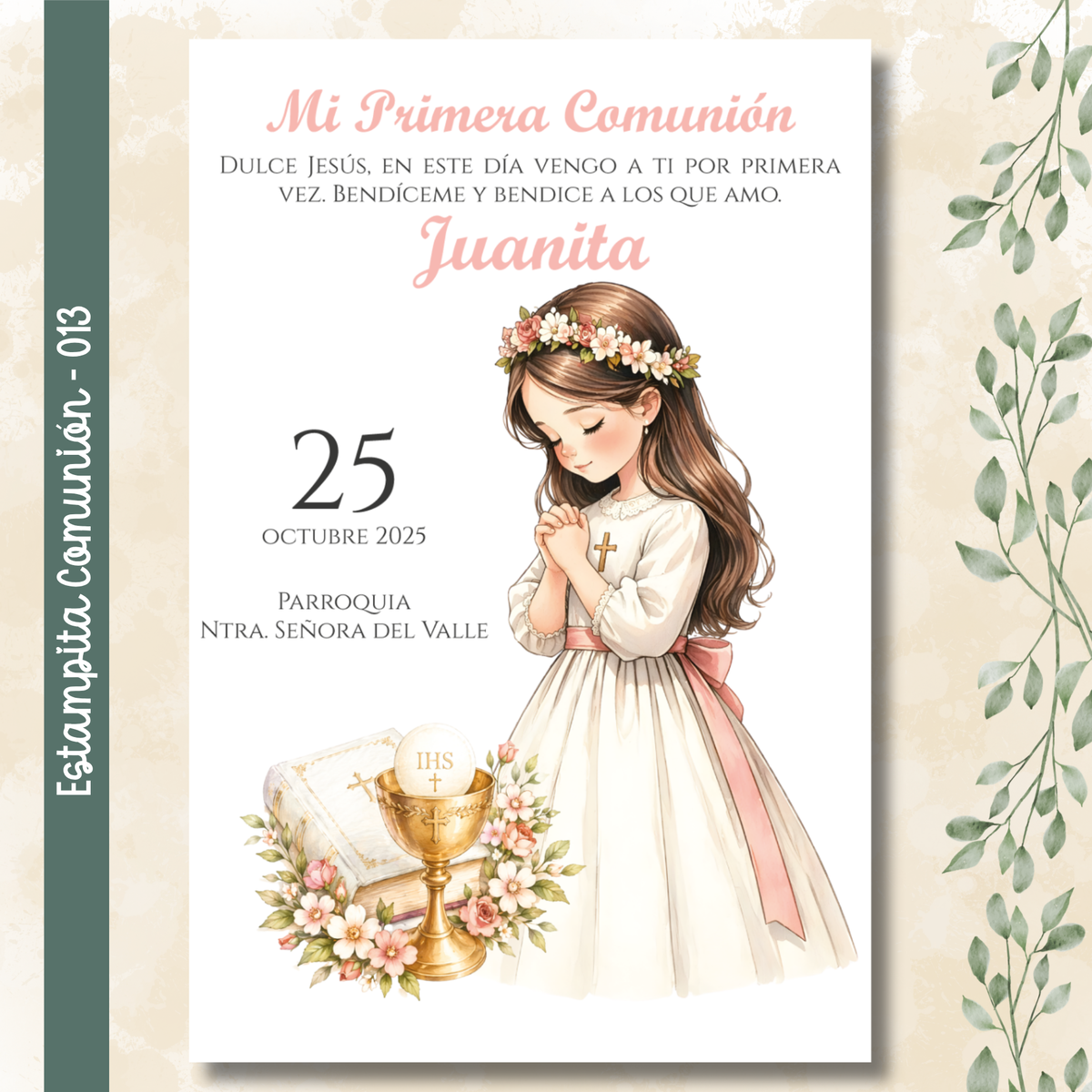 🌿 Estampitas de Comunión Personalizadas