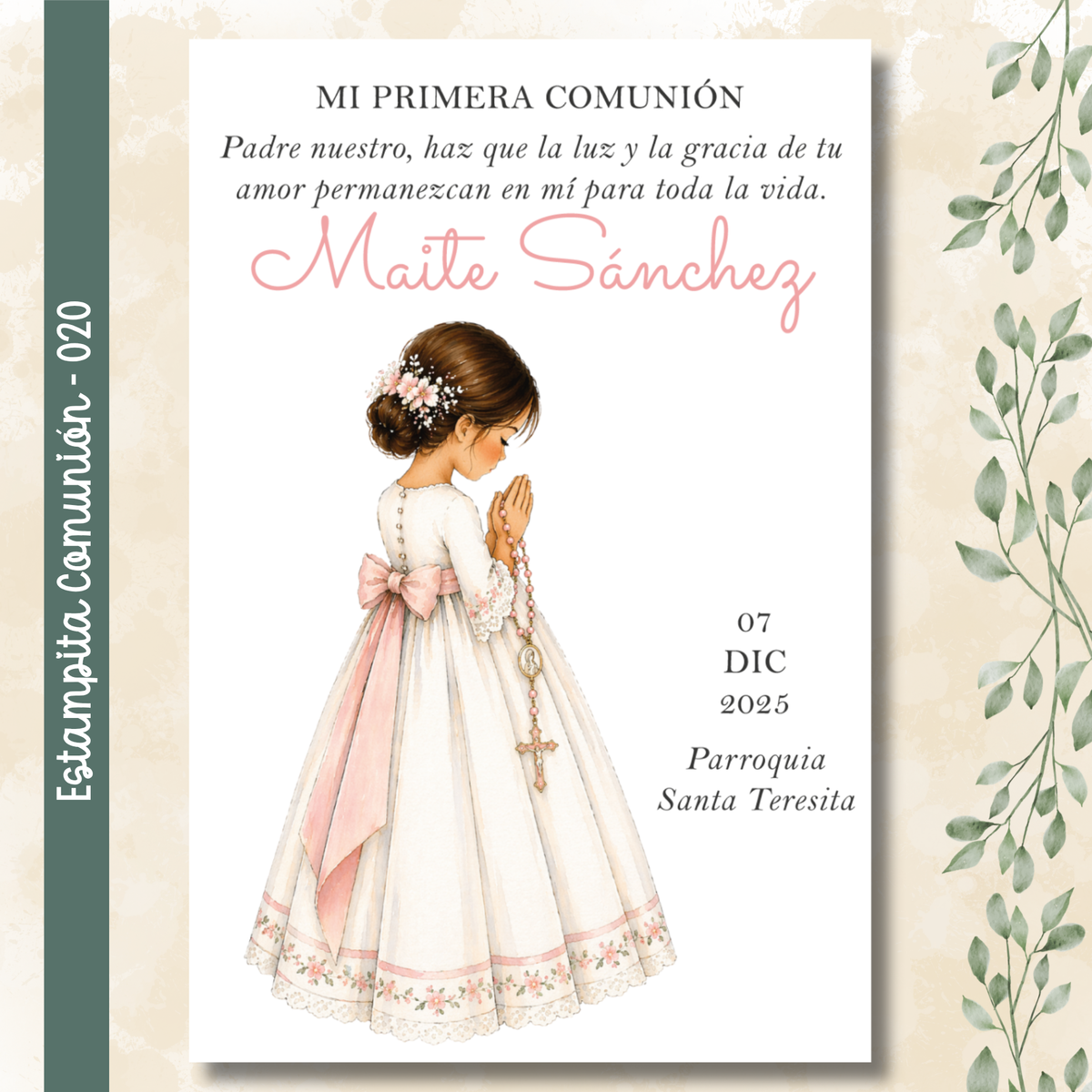 🌿 Estampitas de Comunión Personalizadas