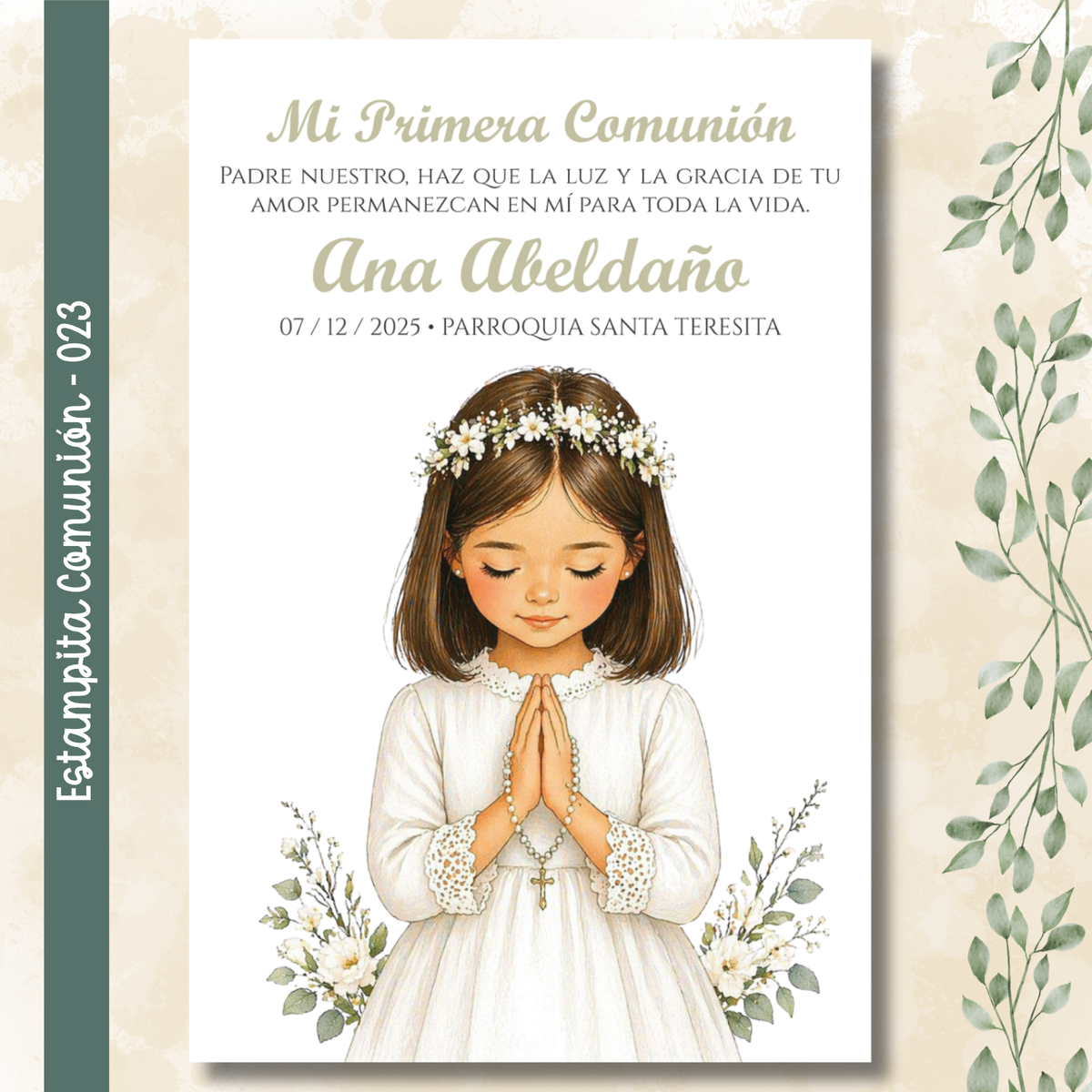 🌿 Estampitas de Comunión Personalizadas