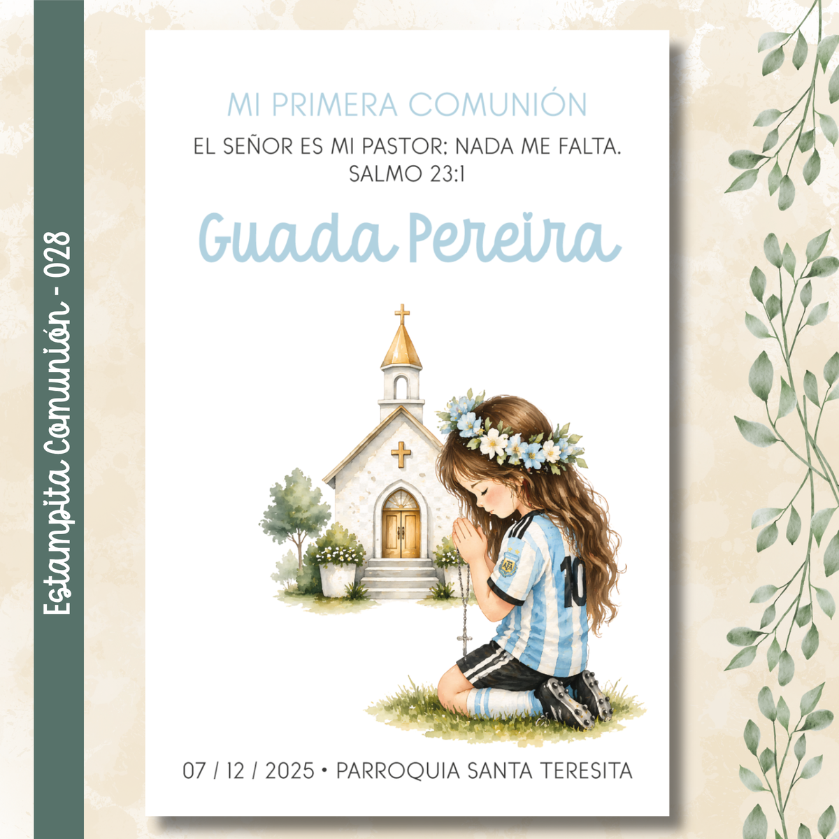 🌿 Estampitas de Comunión Personalizadas